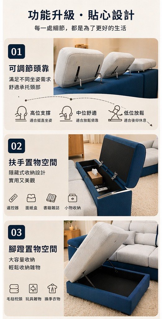 ✔ L型貴妃設計|坐躺都舒適