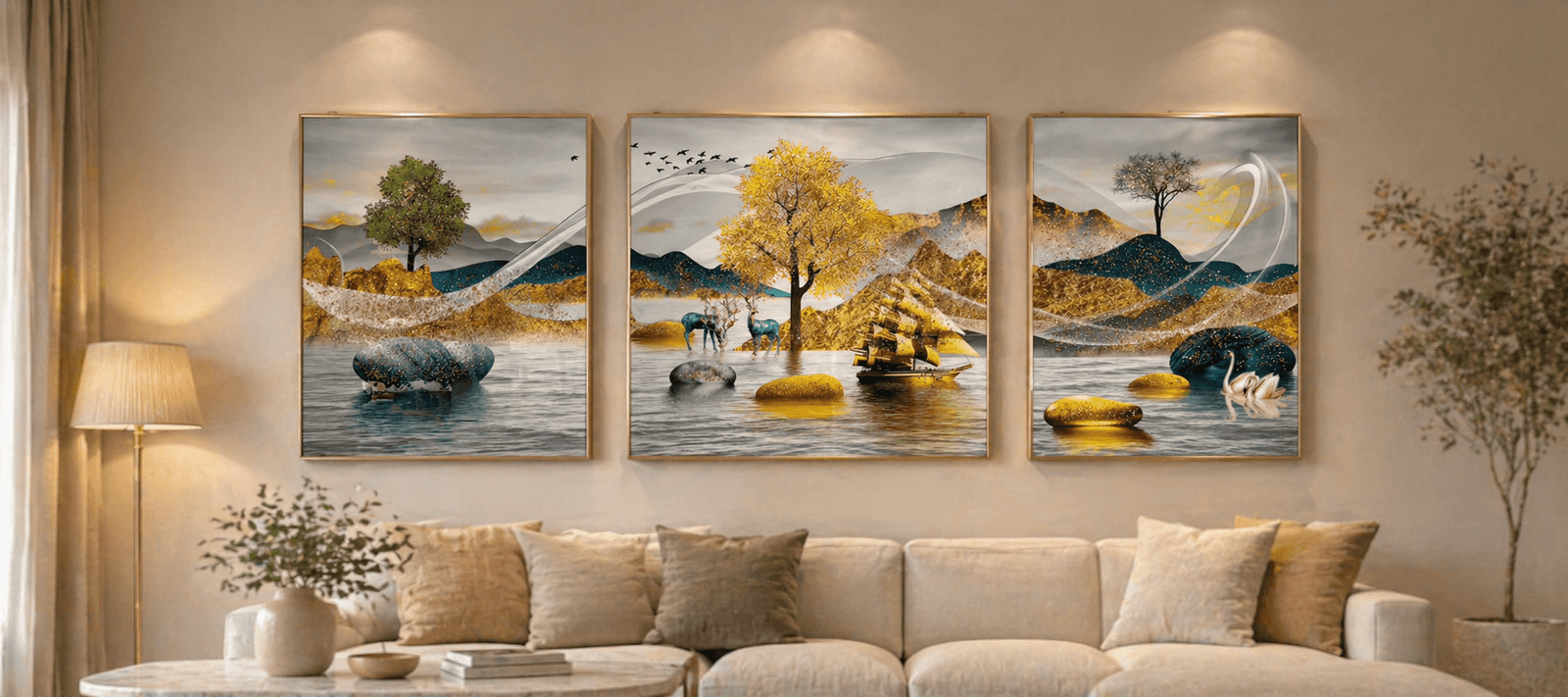 金色意境山水壁畫