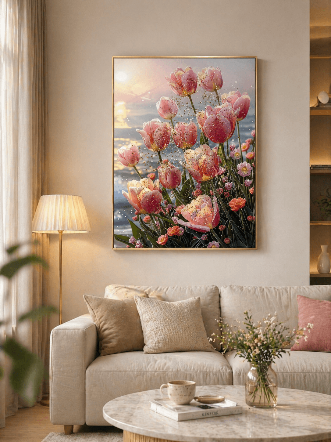 夕陽花海壁畫